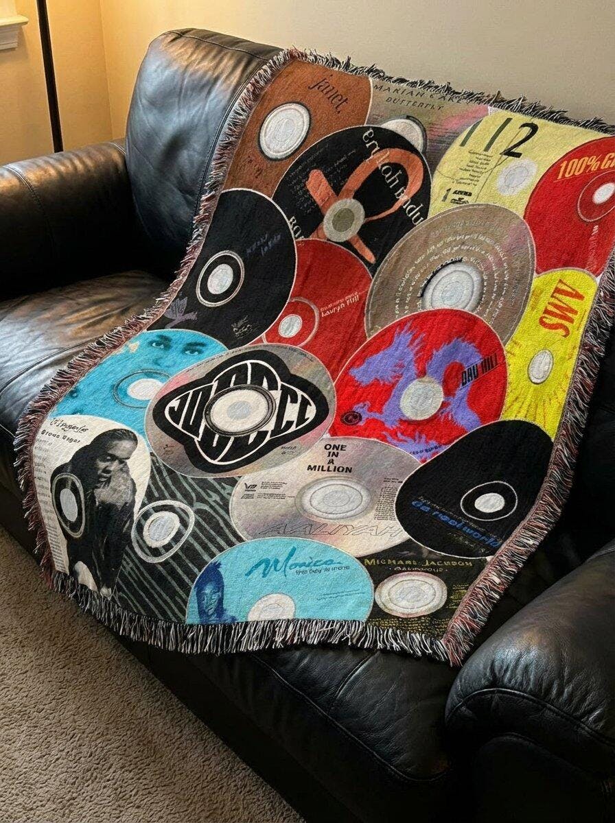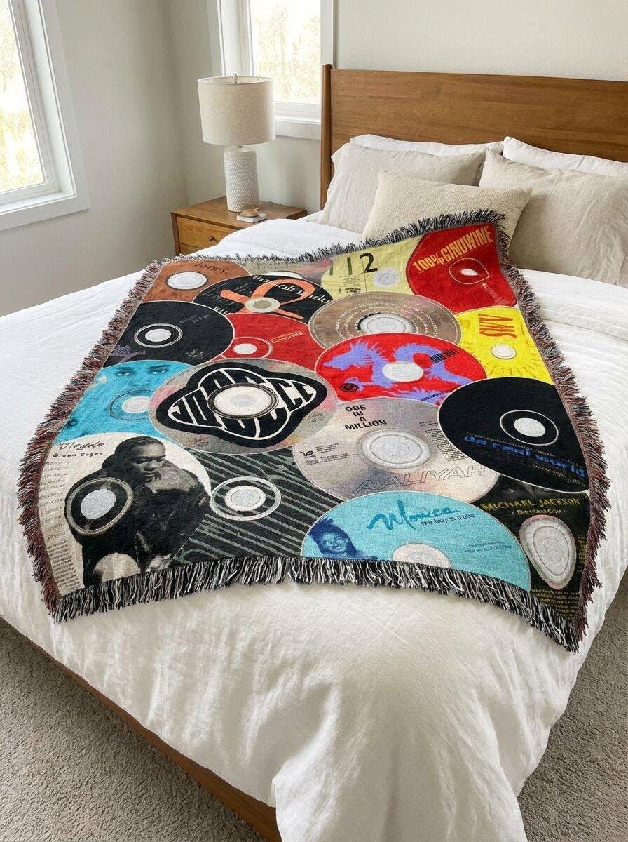 Celebrating the era that gave us Jodeci, Brandy, D’Angelo, Monica, Michael Jackson, and more, this throw is a tribute to the soundtracks that raised us. Every square inch reps the iconic covers that defined 90s R&B and shaped the way we love, dress, and move today.